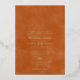 A simple and elegant burnt orange terracotta bridal shower invitation with a foil calligraphy lettering of "Ms. to Mrs." and a heart on the centre.