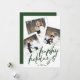 modern multi photo collage green brush happy holiday card