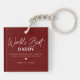 Create your very own DAD keychain with this modern multi-photo grid collage and text. Design features 6 Photographs with curved corner squares with the text DAD in burgandy red blocks that can be changed to any colour. On the reverse the text 'World's Best Daddy' with a cute father quote that can be kept or customised to make it personal to you! and a cute little heart with the kids name/s. PHOTO TIP: Crop and centre your pictures before uploading for best results.