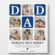 Create your very own DAD plaque with this modern multi-photo grid collage and text. Design features 6 Photographs with curved corner squares with the text DAD in blue blocks that can be changed to any colour. The text 'World's Best Daddy' with a cute father quote that can be kept or customised to make it personal to you! and a cute little heart with the kids name/s. PHOTO TIP: Crop and centre your pictures before uploading for best results.