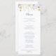 This modern multicolor wildflower dinner menu card is perfect for a rustic wedding. The design features green, yellow, purple, blue watercolor colourful meadow flowers.