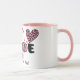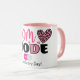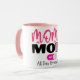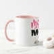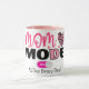 A fun Coffee mug gift for the best in your life. Cute pink hearts and on switch for mum mode, all day every day! Vibrant colours in a modern style typography. Mother never turns off, neither should their coffee cup.