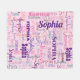 This modern blanket features trendy and popular colours of pink, purple, rose gold, and blue on a pink background with your daughter's name in a typography pattern of different fonts and colours. Great gift for the teenage girl, young girl, or new baby girl!