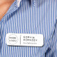 This badge looks professional and it's in keeping with my branding. The magnetic attachment is strong and stays in place all day. The quality of the materials and the colors were exactly as pictured. I couldn't be happier! The printing is clear and easy to read