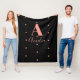 Modern Name Monogram Black Rose Gold Polka Dot Fleece Blanket