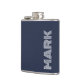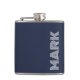 Modern Name Monogram Dark Blue White Stripes Hip Flask
