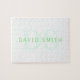 Modern Name & Monogram | Green & White Jigsaw Puzzle
