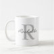 Trendy classic mug featuring a large monogram initial and script name on both sides in grey. Change name & initials using the Template provided. See "About This Product" at side for additional information.