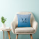 Modern white handwritten script name appears over a large navy blue serif monogram on a light blue to dark blue gradient on each side. Personalise it with your name and monogram in the sidebar.