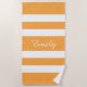 Personalized Modern Name Orange Striped Pool Beach Towel.