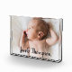 Modern Name Script Baby Boy Photo Block - When we started having children my parents and in-laws kept asking for more photos of the baby. It's one thing to send them digital images, but a framed keepsake with a beautiful shot and baby's name is another. I was inspired to design this baby photo block for all the proud parents, godparents, uncles, aunts and grandparents out there. Display this elegant gift on your desk or mantel. Personalise baby's name and photo.
