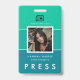A modern and minimalist name tag and photo badge Press ID, perfect for any news profession: journalists, reporters, photographers, etc... Fully customisable background colours. You can aslo easily add your barcode or QR code for security.