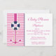 Modern Nautical Anchor Baby Shower Invitation featuring a blue & pink anchor set on a pink and white stripe background. Perfect for a baby. girl baby shower. Visit our shop to view our large selection of nautical sailboat baby. shower invitations. ©Blackleaf Designs
