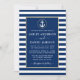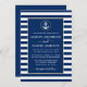 Modern Nautical Anchor Gold Frame and Navy Blue and White Striped Wedding Invitation