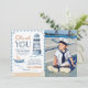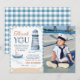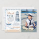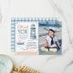 Modern Nautical Blue Boy 1st Birthday Photo Thank You Card