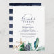 This modern nautical greenery brunch and bubbly invitation is perfect for a beach event. The botanical design features beautiful green leaves with navy flower and gold starfish accents, giving it a beachy vibe.