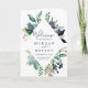 This modern nautical greenery folded wedding program is perfect for a cruise or beach wedding. The botanical design features beautiful green leaves with navy flower and gold starfish accents, giving it a beachy vibe.