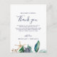 This modern nautical greenery thank you reception card is perfect for a cruise or beach wedding. The botanical design features beautiful green leaves with navy flower and gold starfish accents, giving it a beachy vibe. Place these cards at the table setting for each of your guests at your wedding reception. Personalise the card with your names and a special thank you message.