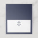 featuring blank space for guest name and table number with navy blue anchor on white background with navy blue border.