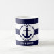 Modern Nautical Navy Blue Striped And Anchor Coffee Mug