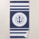 Modern Nautical Navy Blue White Stripes Monogram Beach Towel