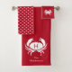 Modern Nautical Red Crab Monogram Name Bath Towel Set