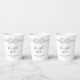 These modern nautical wedding rehearsal dinner paper cups feature a nautical rope knot at the top, with the phrase "the night before" in trendy handwriting script.