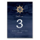 This modern nautical ship helm table number is perfect for a cruise or beach wedding. The simple design features a gold boat wheel on a navy blue watercolor background. The card prints on the front and back (double-sided). Items are printed exactly as they appear on your screen when you add to cart, so personalise and add each table number that you need to your cart individually.
