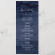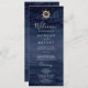 This modern nautical ship helm wedding program is perfect for a cruise or beach wedding. The simple design features a gold boat wheel on a navy blue watercolor background. Include the name of the bride and groom, the wedding date and location, thank you message, order of service, bridal party and an optional "in loving memory" memorial.