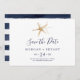 This modern nautical starfish horizontal save the date card is perfect for a cruise or beach wedding. The simple design features gold starfish.