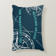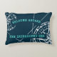 Modern Nautical Welcome Aboard Compass Rose Accent Pillow. A stylish, coastal design in navy blue and white featuring compass roses and navigation lines. The reverse side of the pillow features a bright teal blue background, and the graphics are in navy blue. Personalise the accent pillow with your boat's name and make it uniquely yours. This elegant and simple design also makes a great gift for any boat owner.