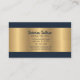 Modern Navy and Brushed Gold Business Card. This name and organisation personalised business card with a navy blue background and brushed gold stripe is appropriate for use in any type of business wishing to market their own products and/or services in a successful manner. Names, titles and choice of fonts can be easily inserted by using Zazzle's design tool.