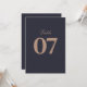 Perfect for guiding your guests to their seats in style, each card features sleek typography and a minimalist design that complements a variety of wedding themes, from classic and formal to chic and contemporary. The blend of deep navy and metallic rose gold creates a stunning contrast, making these table numbers not only functional but also a striking decorative element for your tablescape.