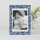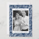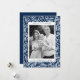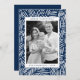 Modern holiday card featuring your photo framed in white with a pattern of navy and white dashes. Personalise the photo Christmas card with your custom greeting, family name, and year in bold navy lettering. The geometric Christmas card reverses to display your custom message in white lettering with a navy background.