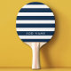 Modern Navy and White Striped Pattern Custom Name Ping Pong Paddle