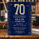 This fabulous navy blue and gold men's 70th birthday party invitation featuring the number 70 in gold with modern fonts and gold glitter sides on the front and a fabulous photo on the back would be perfect for asking people to join you as you celebrate the man in your life's 70th birthday. It is traditional and classic while being fresh, modern and contemporary. To see your unique invitations select "Personalise this template" and type in your information and upload your favourite photo. It's super easy!