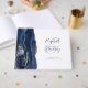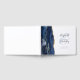 This elegant wedding guest book features a navy blue watercolor agate design trimmed with faux gold glitter. Easily customise the charcoal grey text on a white background, with the names of the bride and groom in whimsical handwriting calligraphy over a large pale blue ampersand. Add additional text of your choice to the front and spine.
