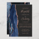 Modern Navy Blue Agate Rose Gold Dark Wedding Invitation