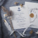 Modern Navy Blue Anchor Nautical QR Code Wedding Invitation