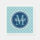 Modern Navy Blue and Aqua Quatrefoil Monogram Napkin