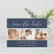 Modern Navy Blue and Blush Wedding 4 Photo Save The Date