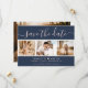 Elegant navy blue and blush wedding photo save the date card featuring a modern script font and a photo collage. Easily personalise this card with your images and wedding details including a wedding website if applicable.