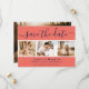 Elegant navy blue and coral wedding photo save the date card featuring a modern script font and a photo collage. Easily personalise this card with your images and wedding details including a wedding website if applicable.
