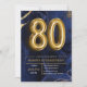 Modern Navy Blue and Gold 80th Birthday Invitation