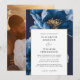 Modern Navy Blue And Gold Floral Photo Wedding Invitation