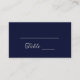 Guide your guests to their seats in style with this elegant wedding place card. The minimalist design features a sophisticated navy blue background with beautiful silver script lettering for the couple's names and wedding date. The card also includes a section for the guest's name and table number, making it a perfect addition to a modern or classic wedding reception. Its clean, two-sided design and stunning colour combination make it a memorable detail for your special day.