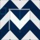 Custom fabric features a modern white chevron zig-zag stripes pattern with navy blue (can be modified) background colour.