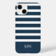 Modern Navy Blue and White Stripe with Monogram Case-Mate iPhone Case