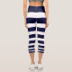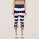 Modern navy blue and white striped Capri Leggings. Trendy nautical blue and white leggings!