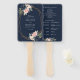 A navy blue themed wedding program fan with watercolor blush pink and navy blue flowers. You can edit the text and colours. For further customisation click on the personalise further link.
